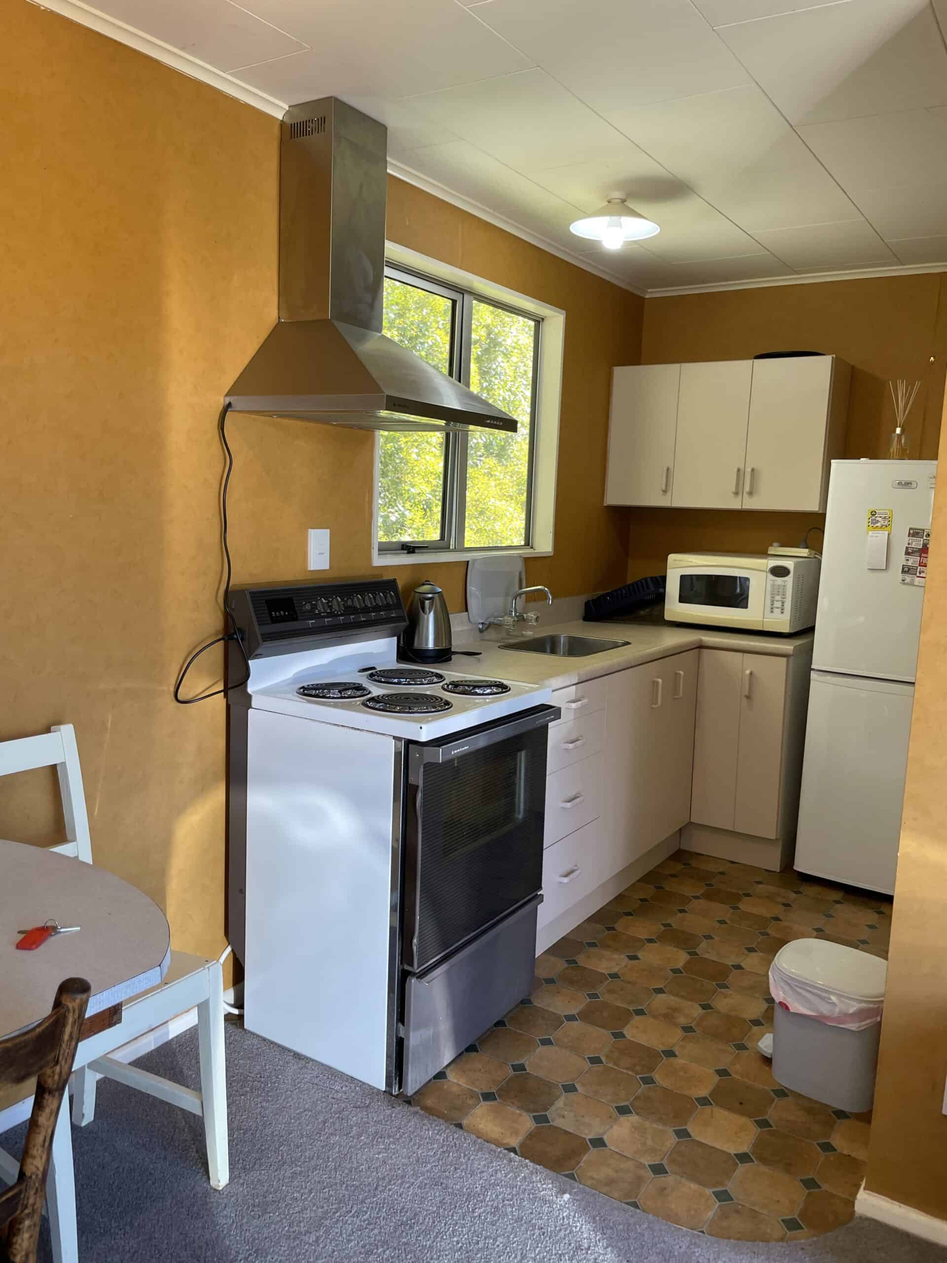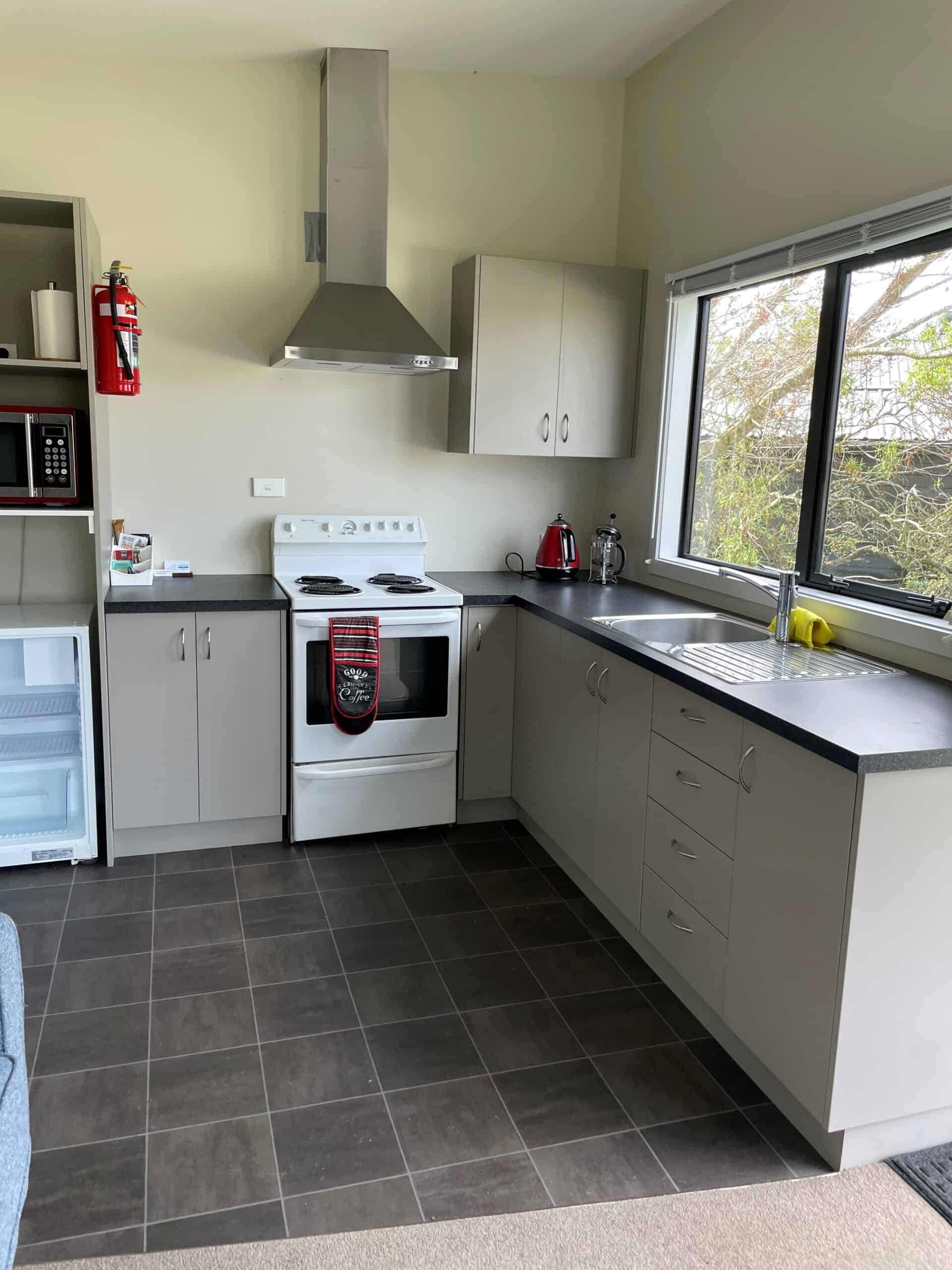 - A self contained kitchen with a stove top oven, microwave , fridge, bench space for food preparation and all cutlery and crockery